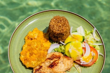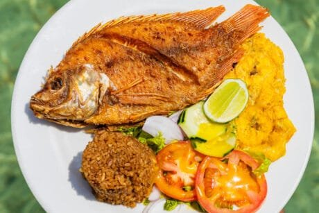 Almuerzo 3 opciones a elegir (pescado, pollo, arroz de mariscos).